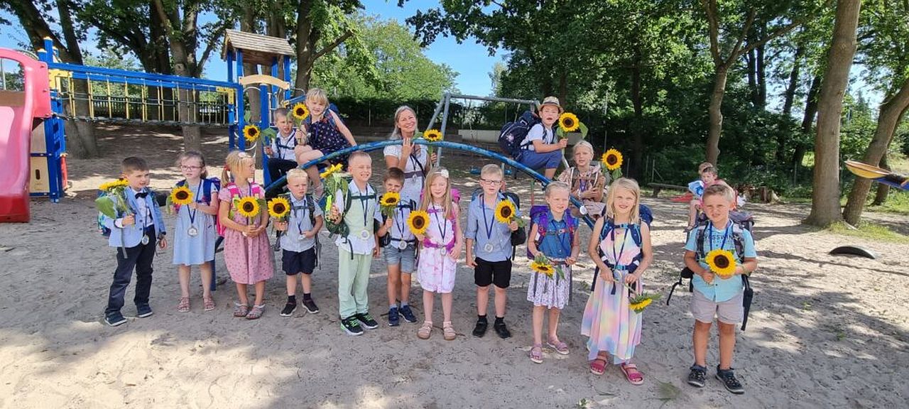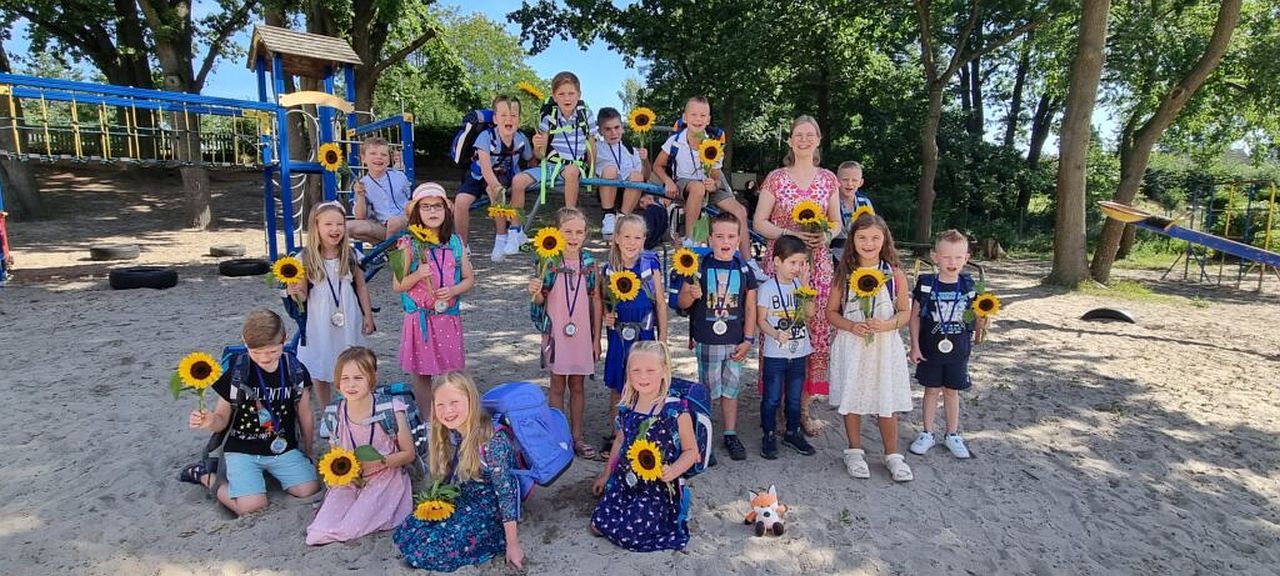Am Samstag, dem 19.August 2023, war es wieder so weit: 40 neue Erstklässler und zwei Lehrerinnen wurden mit einer schönen kleinen Feier bei Sonnenschein auf dem Pausenhof eingeschult.