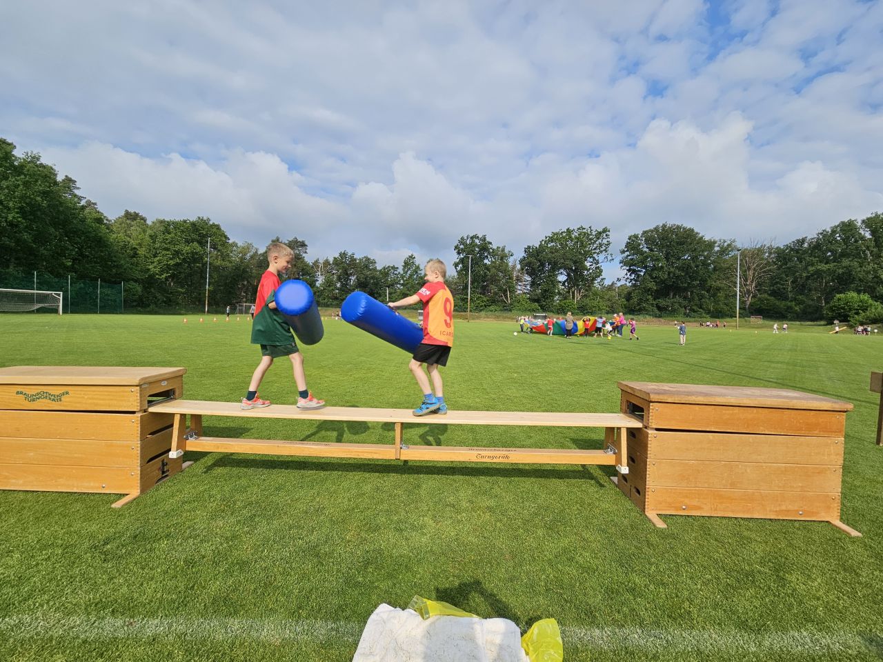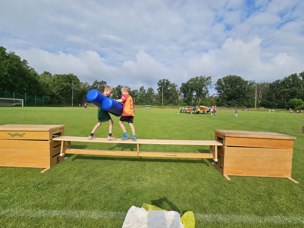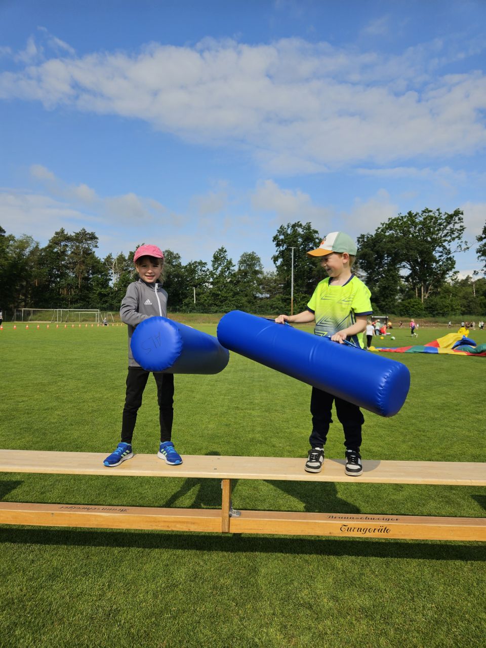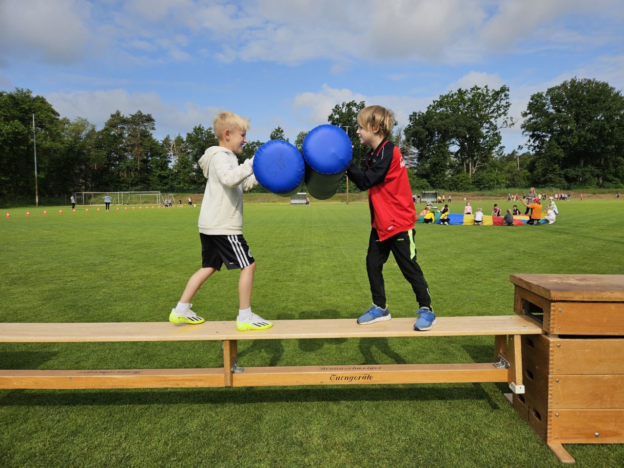 Auch beim diesjährigen Bundesjugendspiele-Wettbewerb hatten wir viel Glück mit dem Wetter. Der angesagte bewölkte Himmel wechselte in ein strahlendes Blau und viel Sonnenschein. Alle Teilnehmer, ob groß oder klein, hatten viel Spaß und nahmen den Wettbewerb sehr ernst. Die Kinder bewiesen sich in den Disziplinen: Ausdauerlauf, Weitwurf, Weitsprung und Kurzstreckenlauf. Drumherum waren viele Spielestationen aufgebaut. Vielen Dank an die zahlreichen Helfer.
