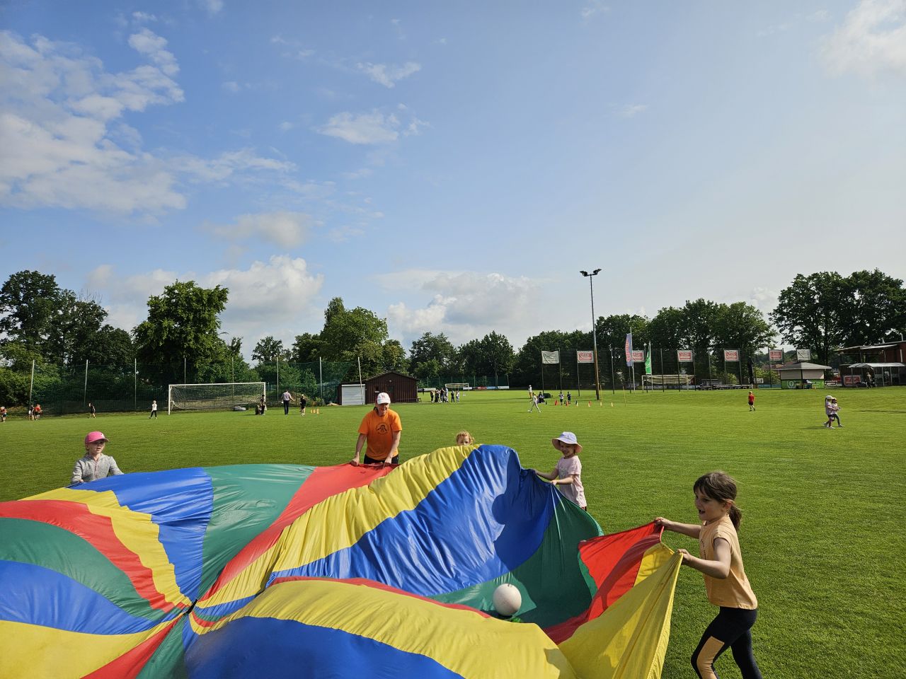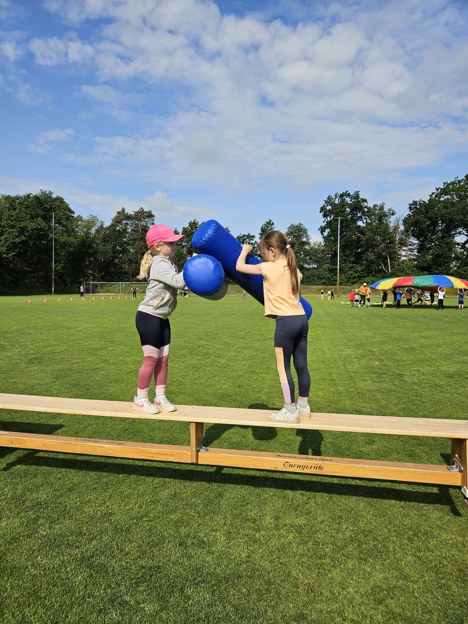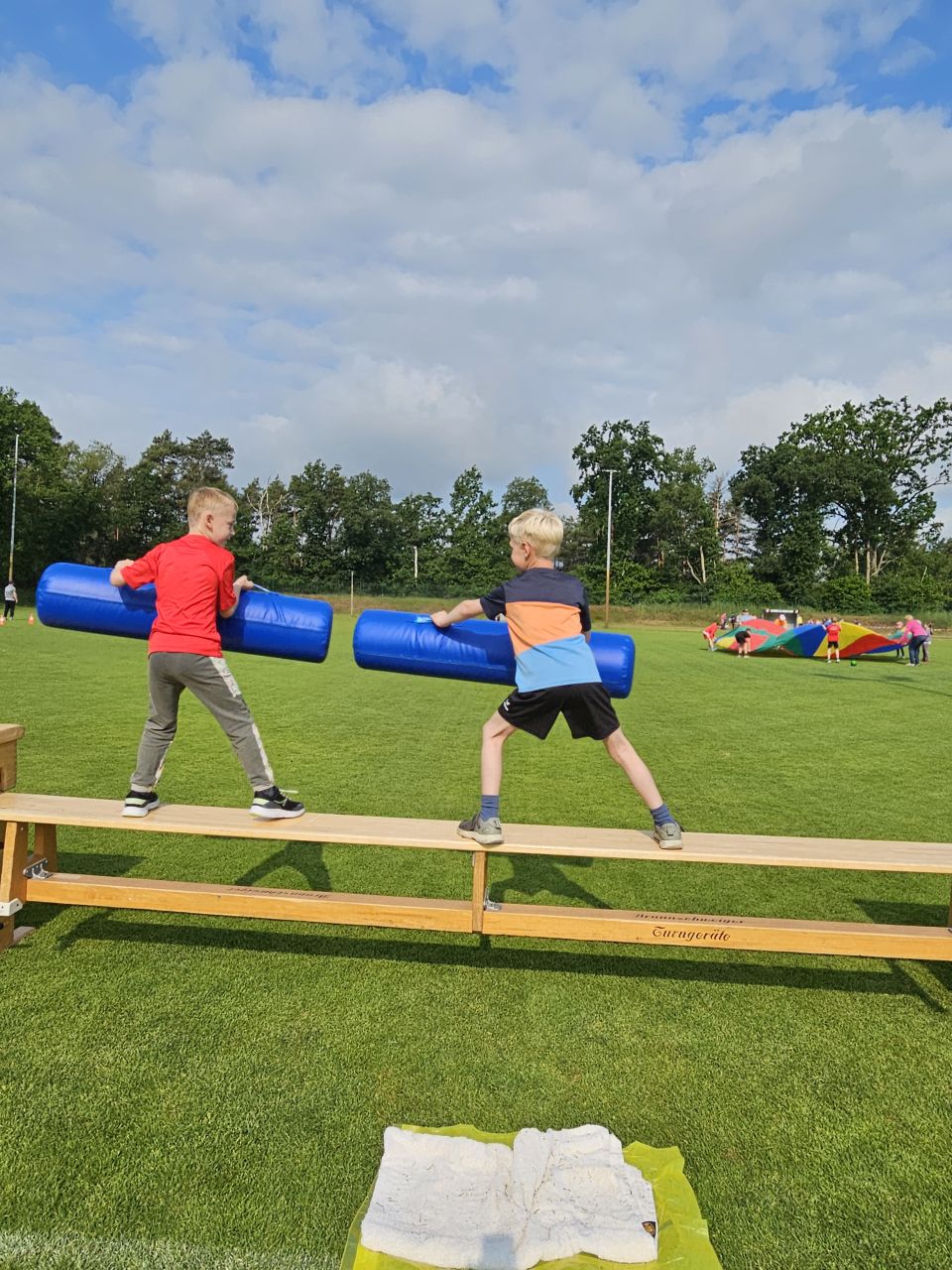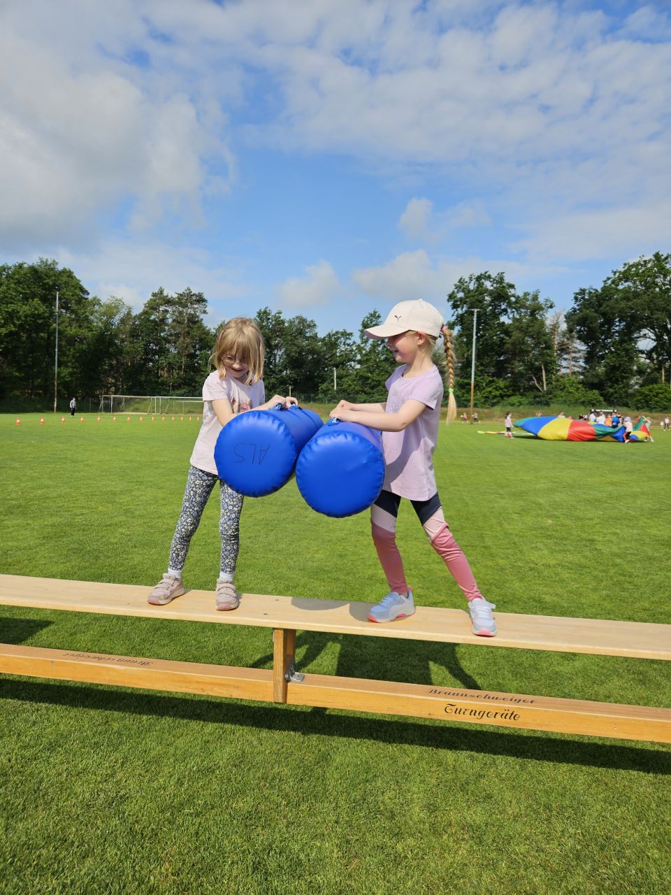 Auch beim diesjährigen Bundesjugendspiele-Wettbewerb hatten wir viel Glück mit dem Wetter. Der angesagte bewölkte Himmel wechselte in ein strahlendes Blau und viel Sonnenschein. Alle Teilnehmer, ob groß oder klein, hatten viel Spaß und nahmen den Wettbewerb sehr ernst. Die Kinder bewiesen sich in den Disziplinen: Ausdauerlauf, Weitwurf, Weitsprung und Kurzstreckenlauf. Drumherum waren viele Spielestationen aufgebaut. Vielen Dank an die zahlreichen Helfer.