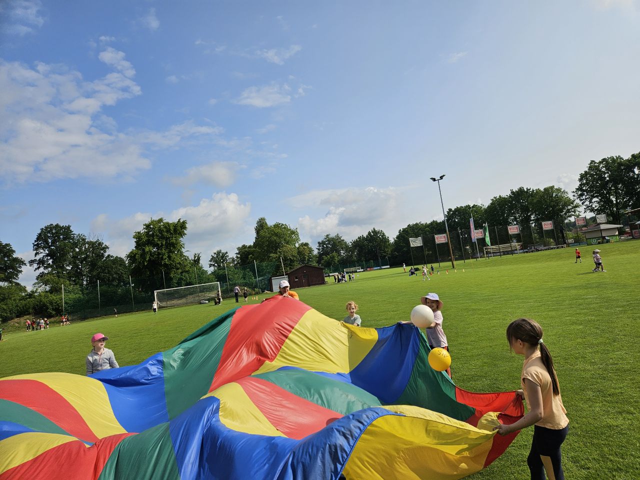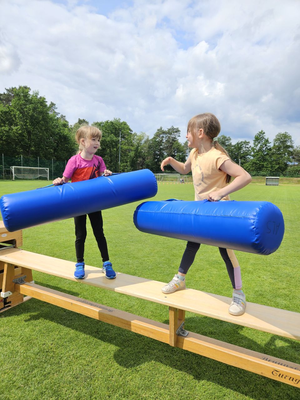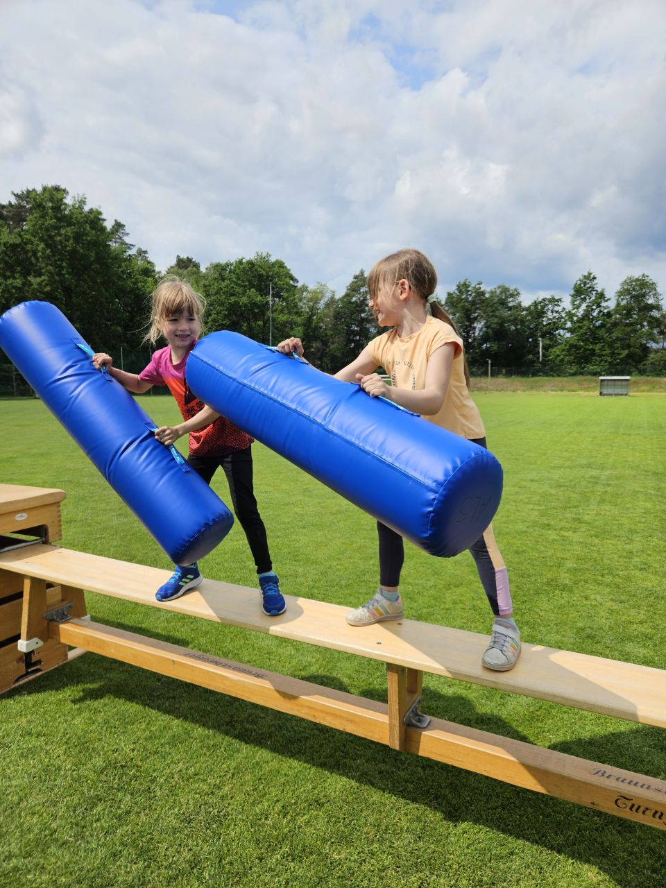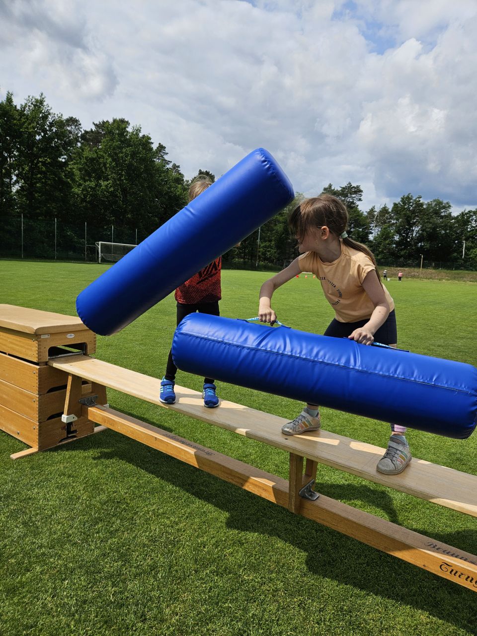 Auch beim diesjährigen Bundesjugendspiele-Wettbewerb hatten wir viel Glück mit dem Wetter. Der angesagte bewölkte Himmel wechselte in ein strahlendes Blau und viel Sonnenschein. Alle Teilnehmer, ob groß oder klein, hatten viel Spaß und nahmen den Wettbewerb sehr ernst. Die Kinder bewiesen sich in den Disziplinen: Ausdauerlauf, Weitwurf, Weitsprung und Kurzstreckenlauf. Drumherum waren viele Spielestationen aufgebaut. Vielen Dank an die zahlreichen Helfer.