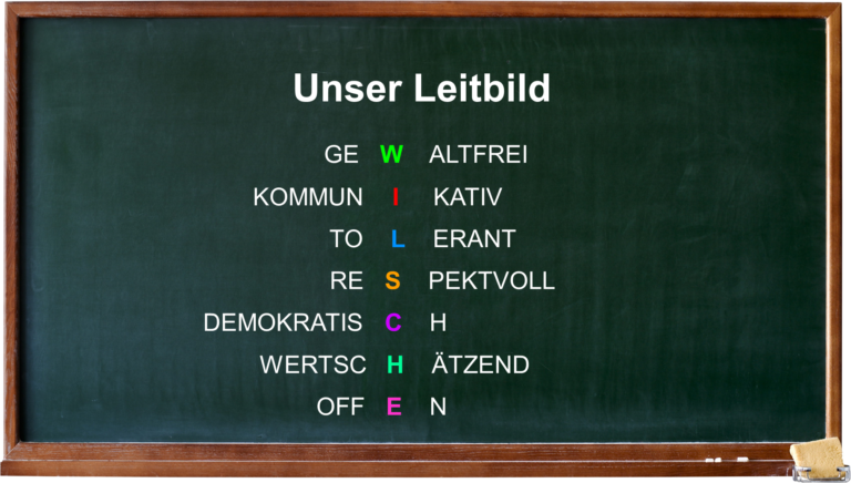 Alle Mitglieder der Schulgemeinschaft streben einen GEWALTFREIen Umgang miteinander an. Hierbei ist sich jeder seiner Vorbildrolle bewusst. Der gewaltfreie Umgang spiegelt sich in unserem täglichen Handeln und unseren Schulregeln wider. Die Schüler (Im folgenden Text steht Schüler auch für Schülerinnen. Alle männlichen Formen implizieren auch die weibliche Form.) lernen Konflikte gewaltfrei und fair zu lösen. Dabei helfen u.a. kooperative Lernformen im Unterricht, klassenübergreifende Projekte und regelmäßige Gespräche wie z. B. im Klassenrat.